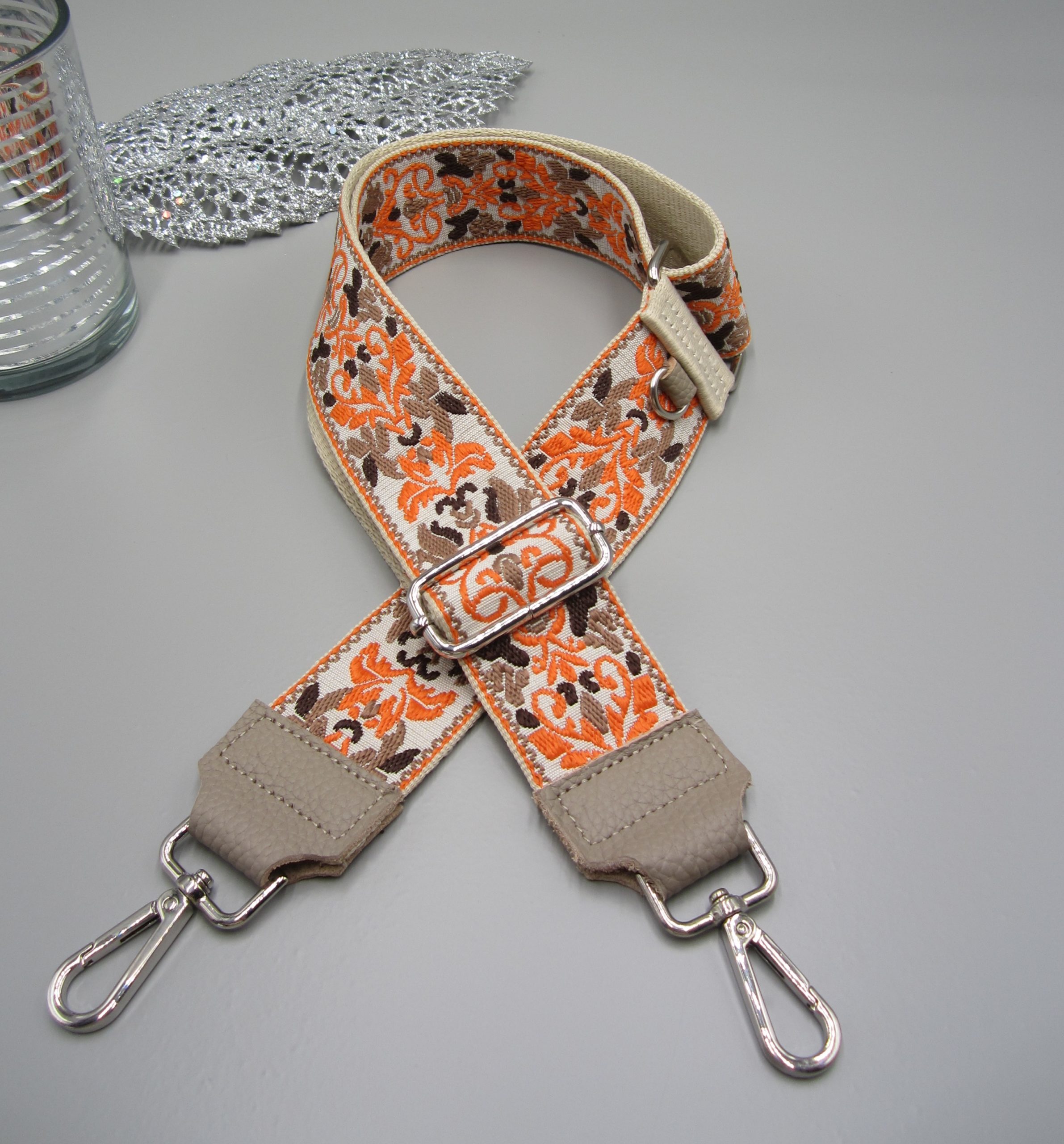Der Taschengurt mit dem blumigen Design ist das perfekte Accessoire, um deiner Handtasche oder Bauchtasche einen eleganten Look zu verleihen. Mit seinen schönen Ranken Design, ist dieser Gurt ein echter Hingucker und bringt sofort gute Laune in jedes Outfit.