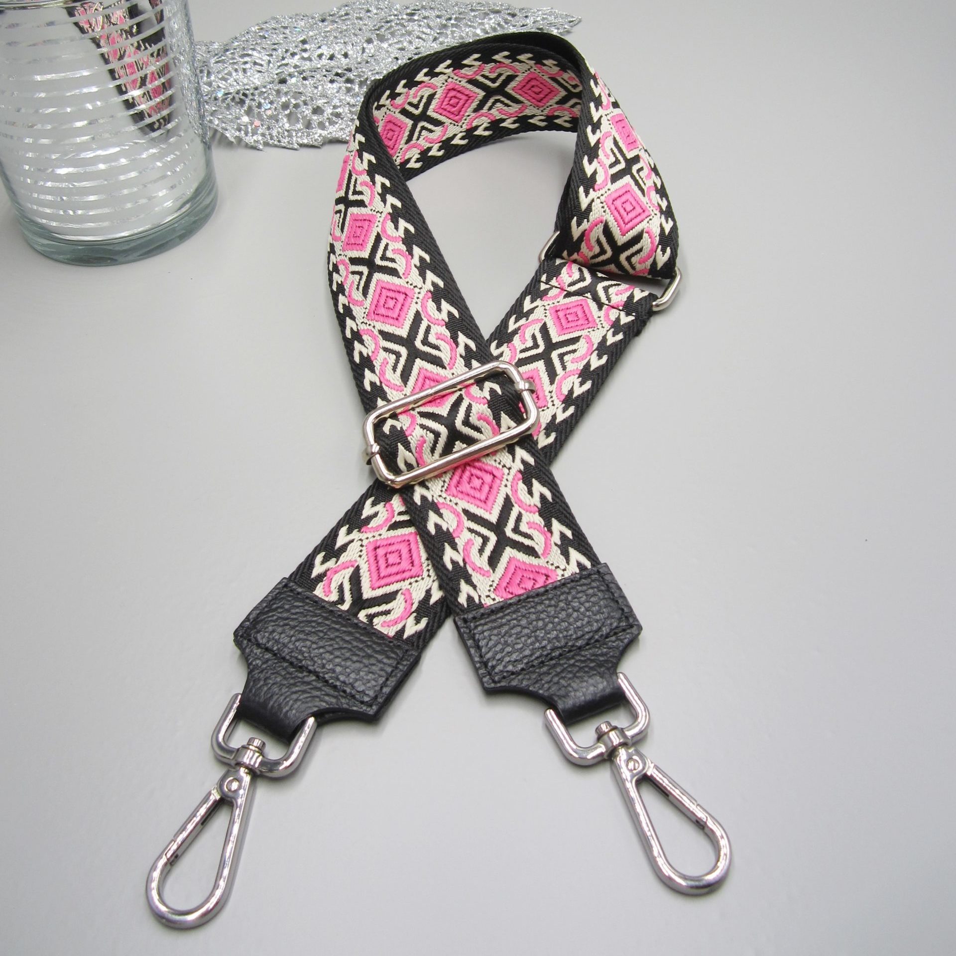 Taschengurt schwarz- Folklore Design pink – Karabiner silber