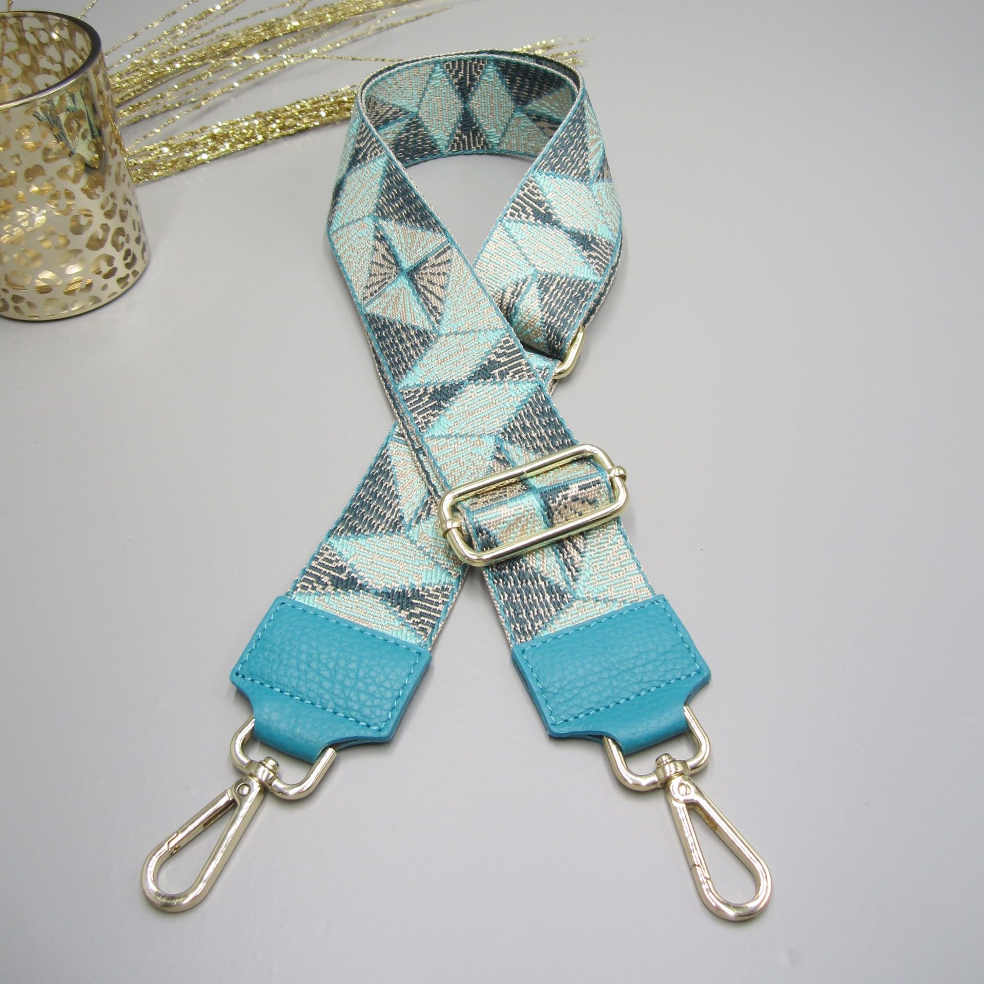 Der türkis farbige Taschengurt mit tollem Design ist das perfekte Accessoire, um deiner Handtasche oder Bauchtasche einen frischen, sommerlichen Look zu verleihen. Mit seinen lebendigen Farben und dem modernen Design ist dieser Gurt ein echter Hingucker und bringt sofort gute Laune in jedes Outfit.